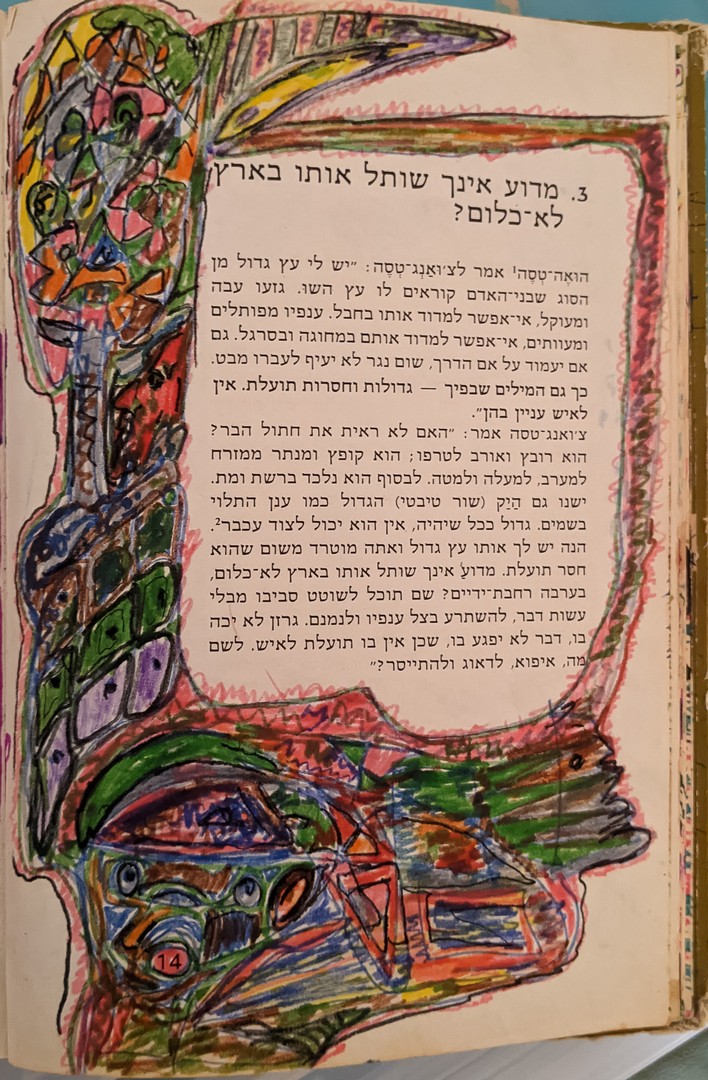 ספר קולות האדמה של חכם סיני עתיק – צ'ואנג טסה מלפני כ 2300 שנה – בתרגום עם הערות ופירושים של יואל הופמן. יואל הופמן היה מרצה של רמיציון באוניברסיטת חיפה. רמיציון הקדיש את הציורים בשוליו לנדב בסוכות ה'תשמ"ט, 1988 בהיותו בן 10 (הספר מונה 105 עמוודים, כאן בינתיים רק כ30)